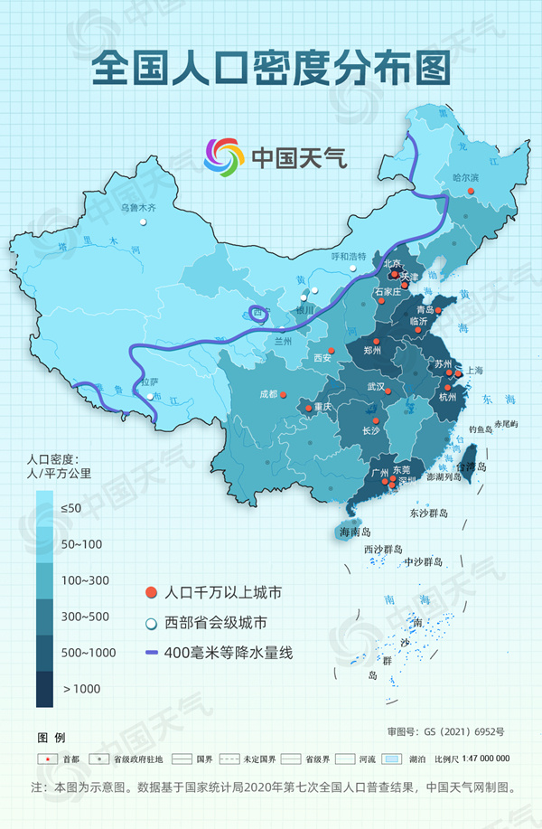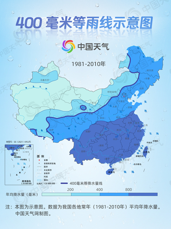 这条著名的胡焕庸线就和400毫米等雨线大体重合。