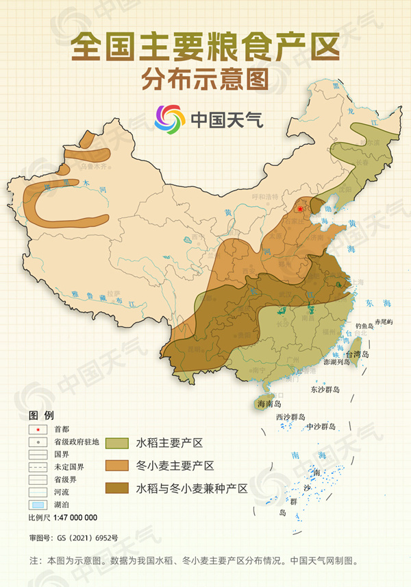 我国主要粮食产区分布示意图