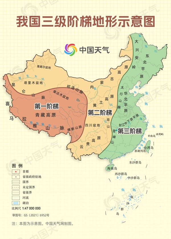 我国三级阶梯地形示意图