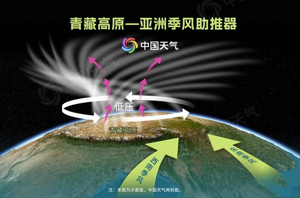 青藏高原与季风关系示意图