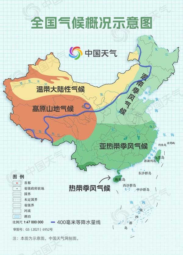 从地图上看,这条神奇的400毫米等雨线整体呈东北-西南走向,它的形成不仅取决于我国特殊的地形和地理位置,也取决于我国独特的气候格局。