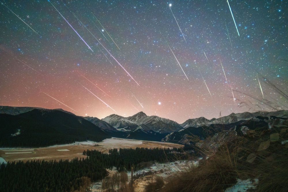 2022年12月23日,在甘肃陇南拍摄的小熊座流星雨(多张叠加)。(鲁罡摄,星联CSVA供图)