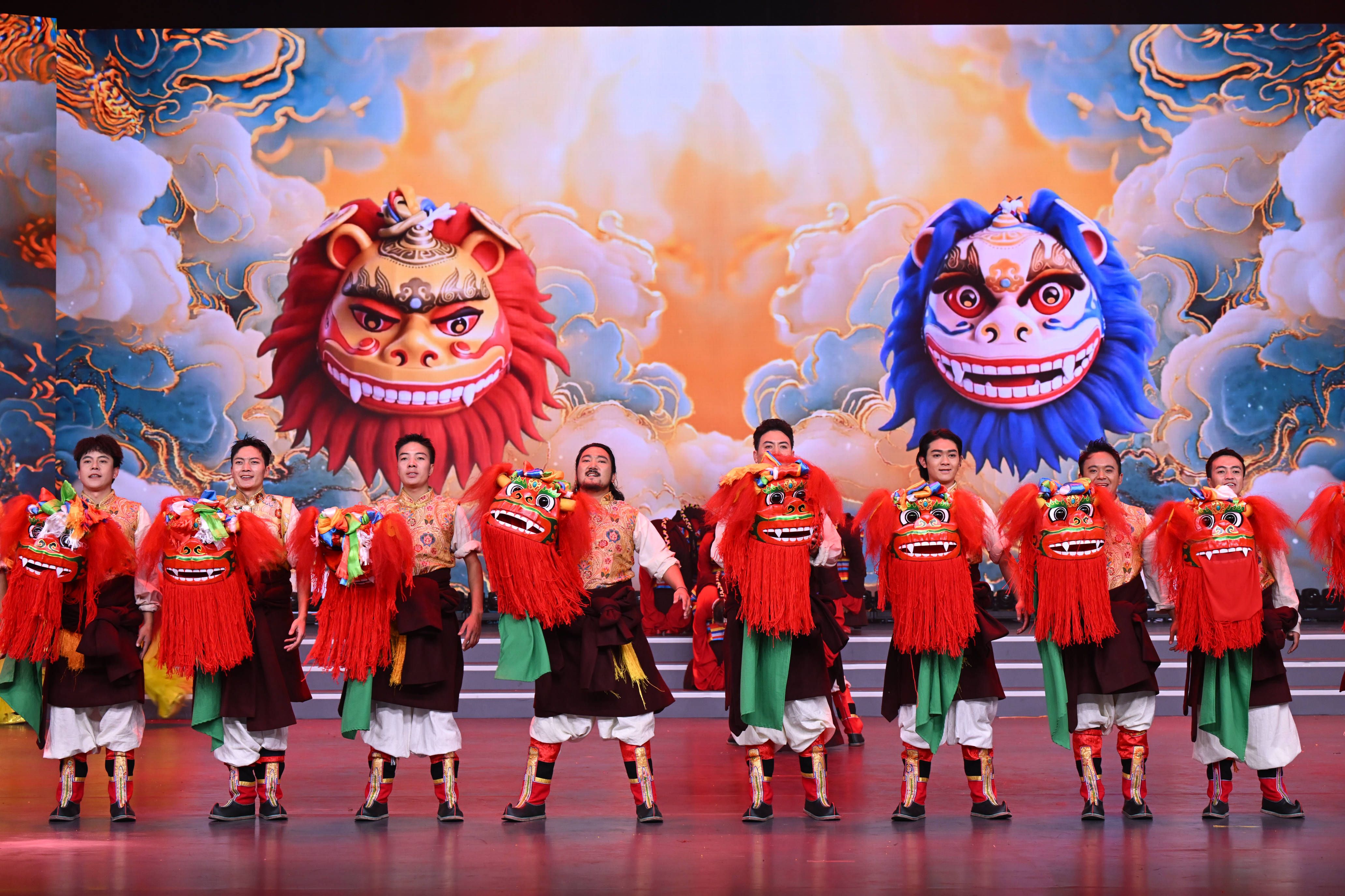 今年联欢会上,昌都市洛隆县艺术团的演员们带来了一场独具特色的硕督狮子舞表演。表演者们身着色彩斑斓的彩衣,踩着欢快激昂的鼓点灵动腾跃,巧妙地将中原舞狮的矫健与高原热巴舞的韵律融合在一起。硕督狮子舞传承至今已有数百年历史,2024年,它被列入西藏自治区级非物质文化遗产名录。来自洛隆县的洛松江村接触狮子舞已有20余年,在他眼中,舞狮不仅仅是一门技艺的延续,更是一代代人口耳相传的民族团结佳话。