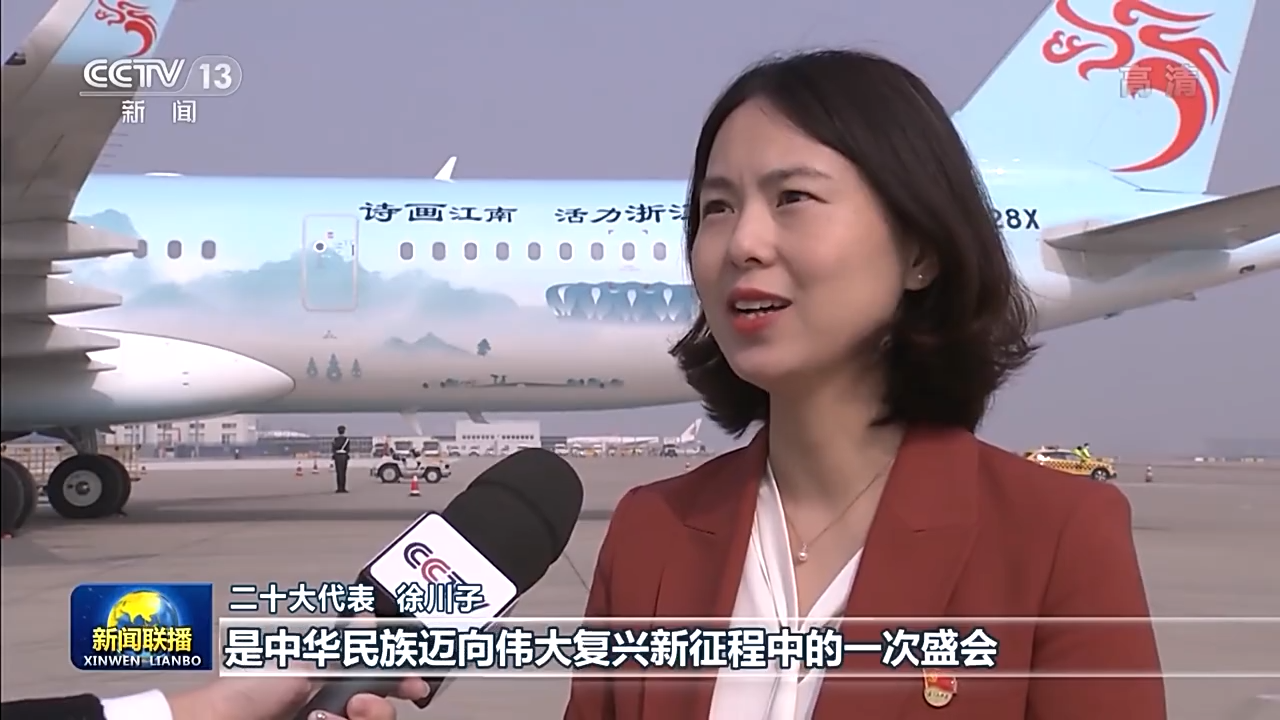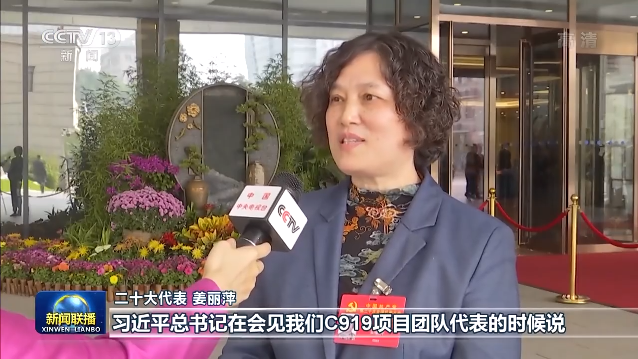 二十大代表 姜丽萍:习近平总书记在会见我们C919项目团队代表的时候说,让中国的大飞机翱翔蓝天。我们将积极践行习近平总书记重要指示,扎实推进制造强国建设。