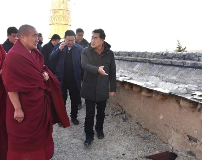 在甘加镇政府和白石崖寺,何谋保仔细察看政府办公楼、寺院经堂墙体裂缝,部分僧舍墙体垮塌等情况,走访慰问乡镇干部、寺管会成员及僧人。何谋保强调,要进一步加大工作力度,组织专家全面开展受灾房屋、建筑物安全鉴定,对重点部位和公共设施场所进行拉网式排查,及时消除安全隐患,防止发生次生灾害,最大程度保障人民群众生命财产安全。要持续做好灾情摸排、核实及灾损统计工作,真实准确上报灾损数据,积极争取关心支持。要继续加强与上级应急、地震部门的沟通对接,密切关注震情形势,全力做好各项应急准备工作。要把灾后房屋修缮、隐患排查与环境卫生整治紧密结合起来,对卫生死角、乱堆乱放等问题开展集中清理,确保群众居住安全放心、环境干净整洁。要树牢忧患意识,强化底线思维,统筹做好地震应急、冰冻灾害、道路交通、森林草原等安全防范,认识再提高、责任再压实、要求再细化、措施再强化,坚决将各类风险隐患消除在萌芽状态,确保年末岁尾安全生产形势平稳向好。