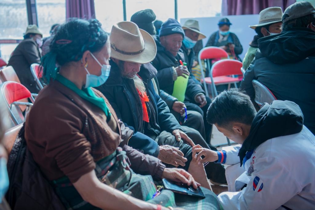 村民德吉也陪着奶奶前来就诊。“我奶奶今年81岁了,有高血压,去医院不方便。这次义诊活动看病、拿药都是免费的,对我们很有帮助。”德吉说。