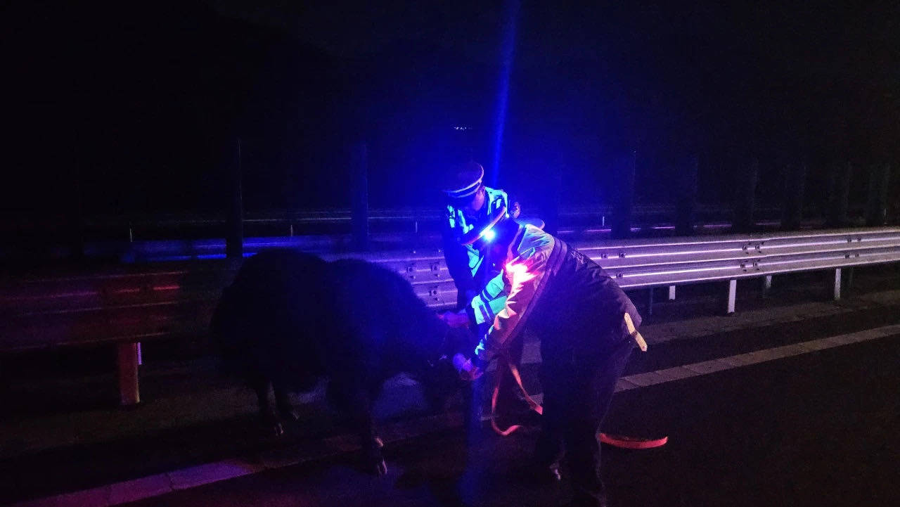 民警到达现场后,首先对该路段进行了临时封控管控,做好安全防护。随后,对牛群进行了围堵和驱赶。凌晨4时15分许,在执勤民警的通力合作下,成功将牲畜带离高速公路,及时消除了这一安全隐患。