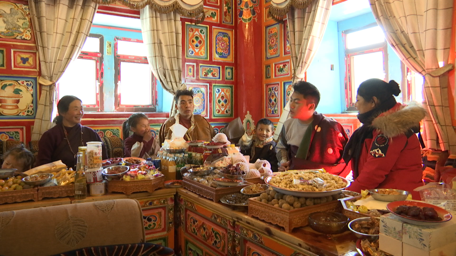 换上了新的藏装,吃着丰富的美食,全家人其乐融融的围坐在一起,欢聚的喜悦洋溢在每个人的脸上,慈祥的母亲、严厉的兄长、勤劳的嫂子,还有欢天喜地的侄儿侄女都让离家在外的仁孜倍感心安。