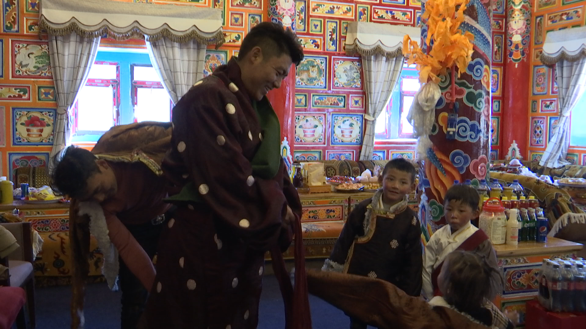 在外上学了一年的甘孜州新龙县麻日乡麦坝村村民仁孜是家中唯一的大学生,去年因为疫情,仁孜没能回家过年。今年的新龙“十三节”,仁孜回到了久别的家中,家里人特意为他缝制了崭新的藏装,并准备了丰富的当地特有节庆美食,一家人一起度过一个团圆年。