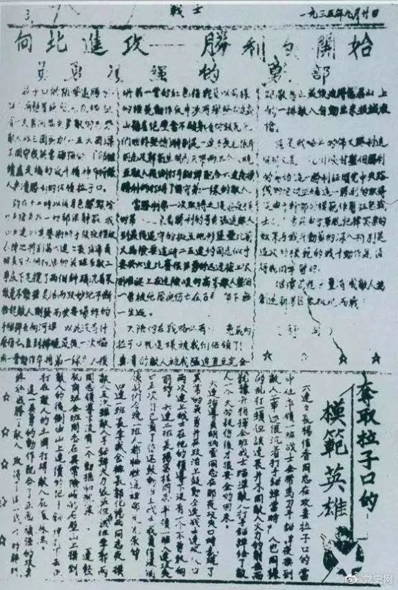 ◆1935年9月20日,红一军团《战士报》刊登的红军攻破腊子口的消息。