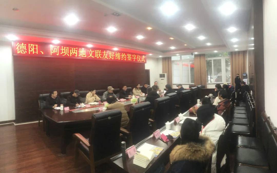 近日,德阳市文联与阿坝州文联建立友好文联签约仪式在德阳市文联会议室举行。德阳市、阿坝州文联领导和部分艺术家代表参加了签约仪式。