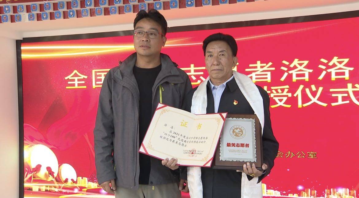 宣讲报告会上,昌都市委宣传部相关负责同志为洛洛颁发了证书、奖牌。