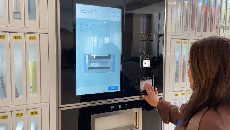 来到西藏自治区图书馆阅览室,记者看到人脸识别借还书机器就在入口处摆放着,记者按照提示绑定读者证后,将书放置在机器上选择刷脸方式归还,随即不到十秒完成了还书操作,借书也是同样的流程,整个过程非常快速便捷。