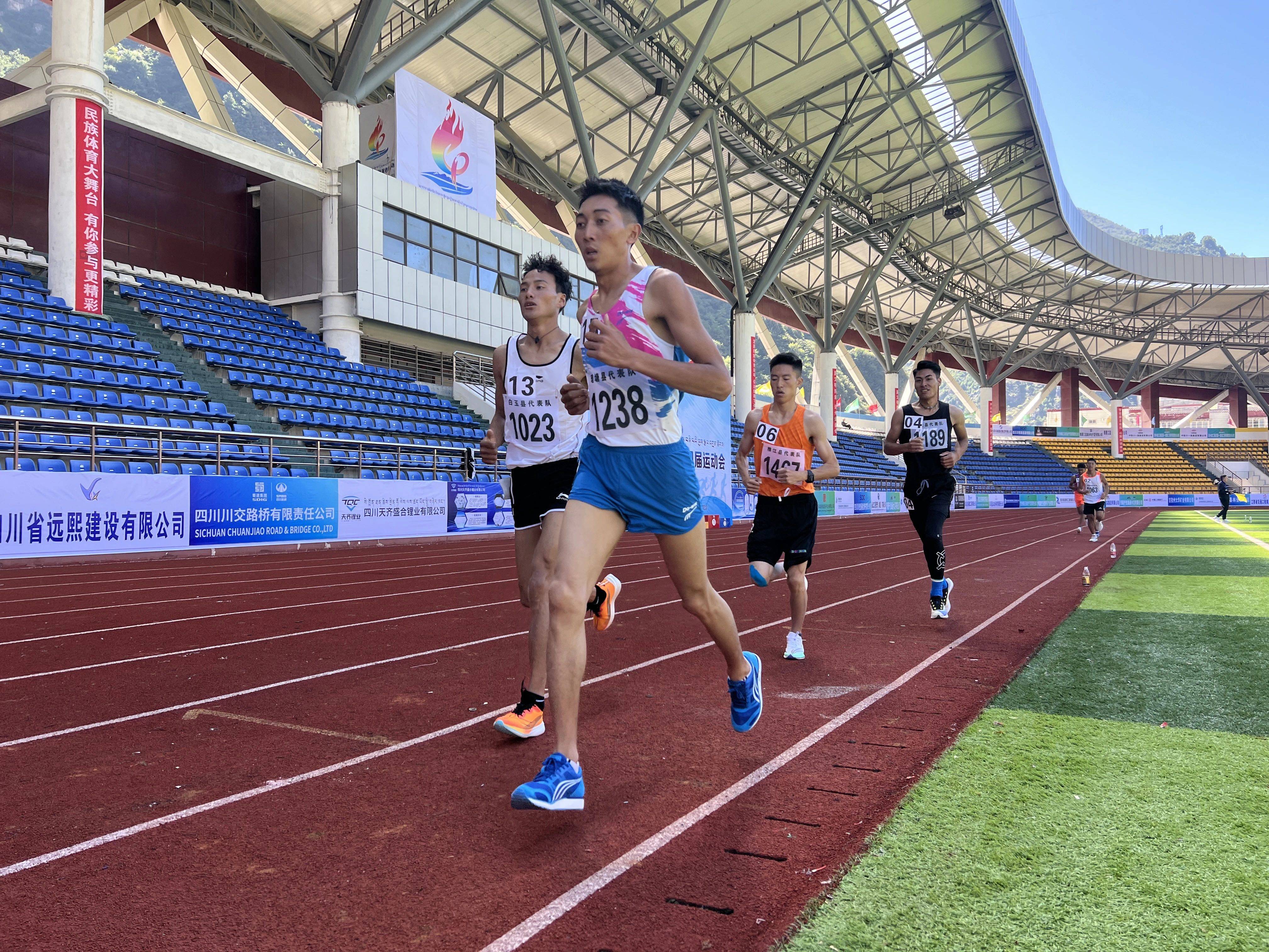 在甲组男子800m赛跑中,泸定县代表队选手邱志磊用2分零10秒72跑完全程获得第一名;该项目第二、三名分别是丹巴县代表队选手丹巴仁青和康定市代表队选手甲央扎西。