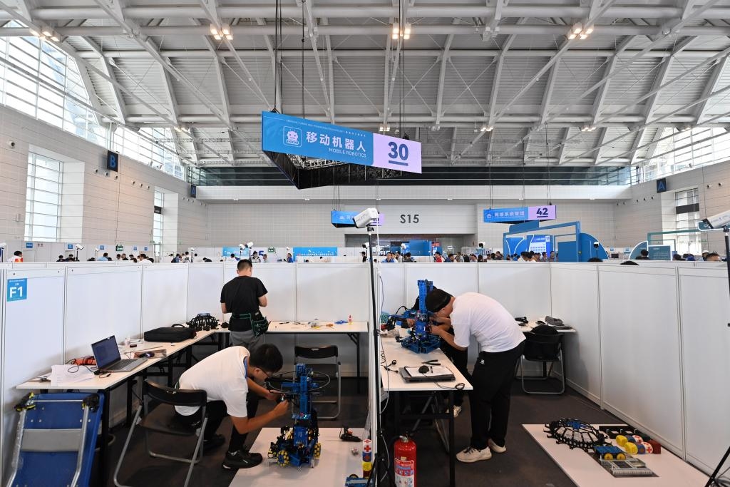 9月16日,选手参加移动机器人项目比赛。新华社记者 李然 摄