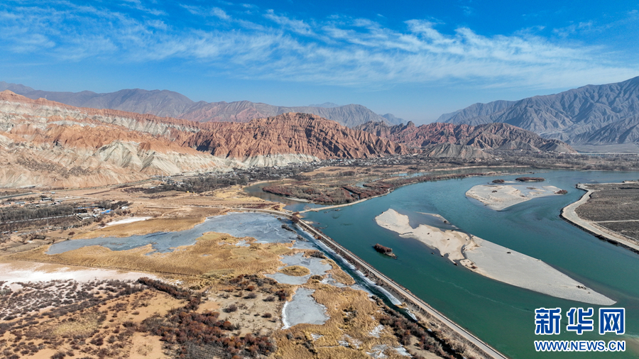 冬日时节,位于黄河上游的青海省海南藏族自治州贵德县境内的千姿湖湿地公园风景如画。