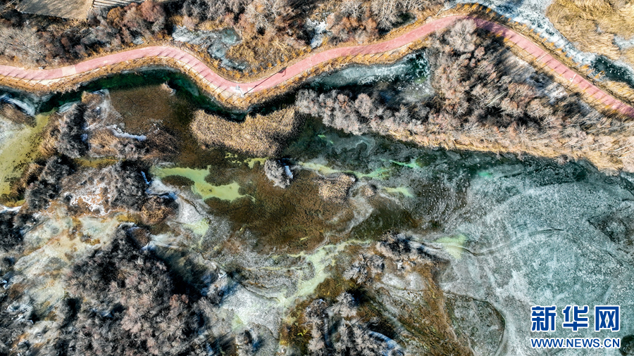 航拍冬日千姿湖湿地公园。新华网 宋忠勇 摄