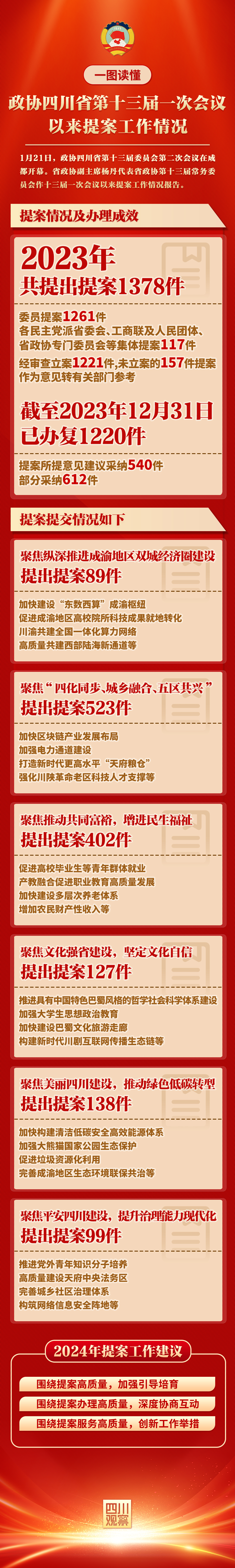 一图读懂丨政协四川省第十三届一次会议以来提案工作情况