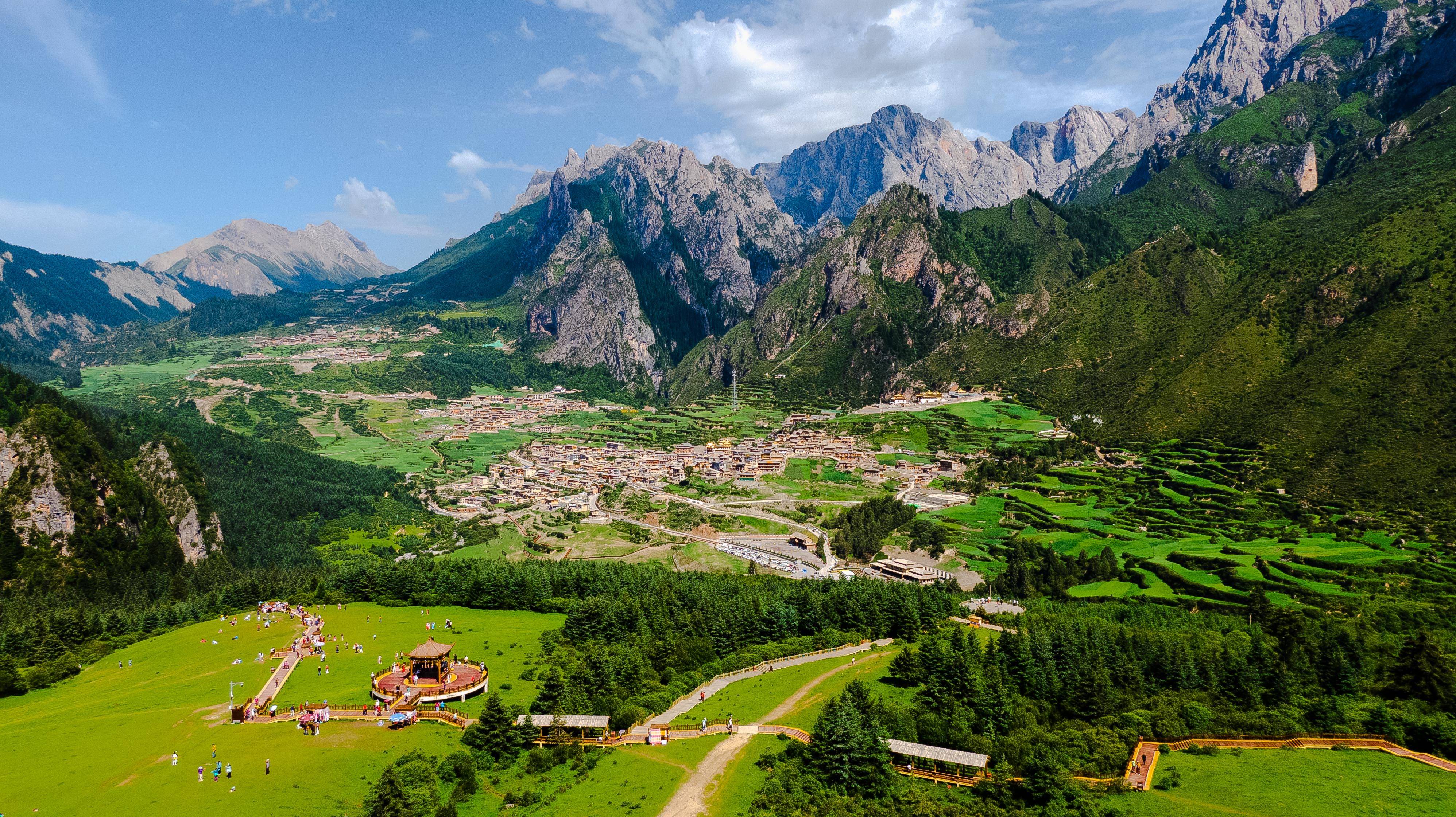 扎尕那景区位于迭部县益哇镇境内,距甘肃甘南州迭部县城28 公里,雄居迭山山脉之间,平均海拔4000米,集石林、森林、古冰川遗址、农耕文化、田园风光、寺庙、藏寨等资源为一体,内有4个村组225户1563人,经营民宿(农家乐)210 户。