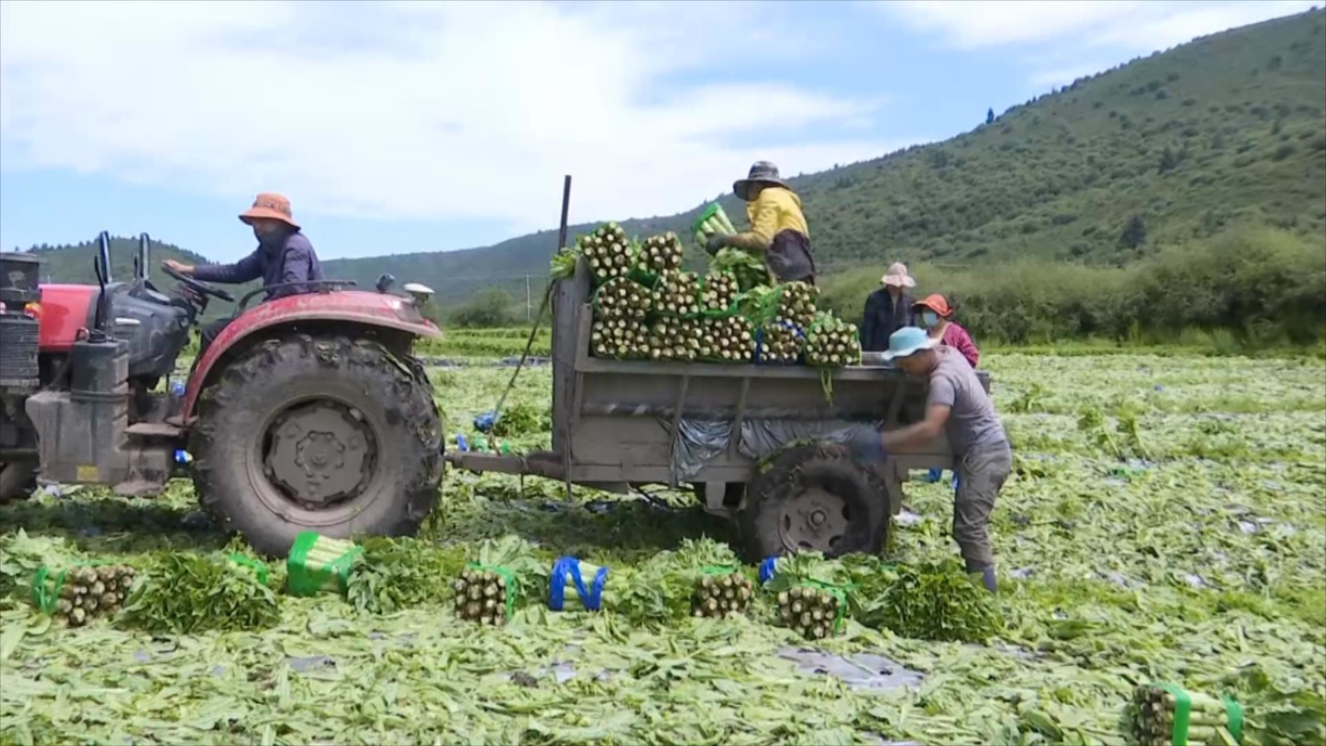 眼下,走进四川省阿坝州松潘县川主寺镇的三青莴笋种植基地,836亩三青莴笋迎来丰收季,合作社的社员们正忙碌着采收莴笋,每个人的脸上都挂着盈盈笑意。菜农们表示,今年雨水充沛,光照充足,三青莴笋的长势喜人,采收价格很理想。