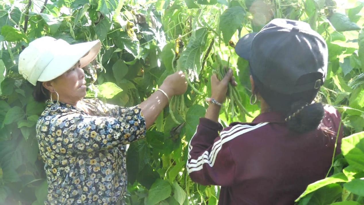 在阿坝州黑水县晴朗乡沙窝村,成片种植的四季豆垂条细长、豆粒饱满,长势十分喜人,一行行四季豆架整齐排列着,缠绕在豆架上的藤蔓挂满了饱满青翠的四季豆。