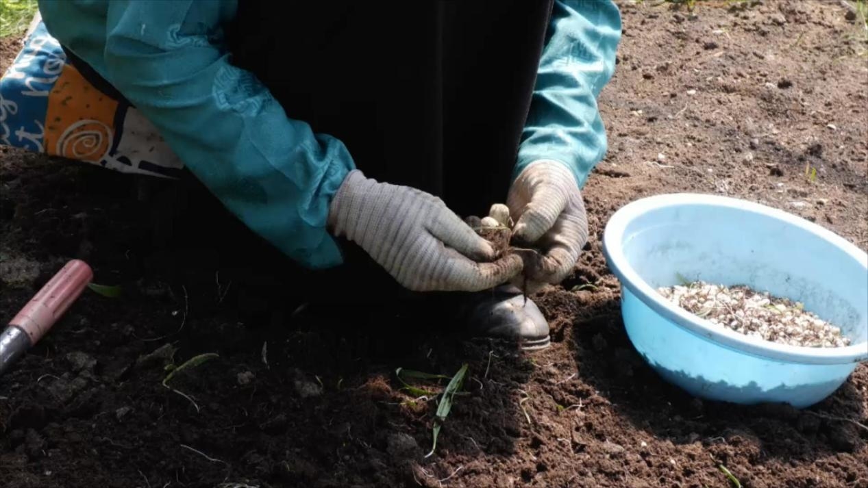 在阿坝县阿坝镇川贝母人工种植基地,农户们上下翻动着小锄头,一颗颗带着泥土芬芳的暗紫贝母被轻轻挖出。