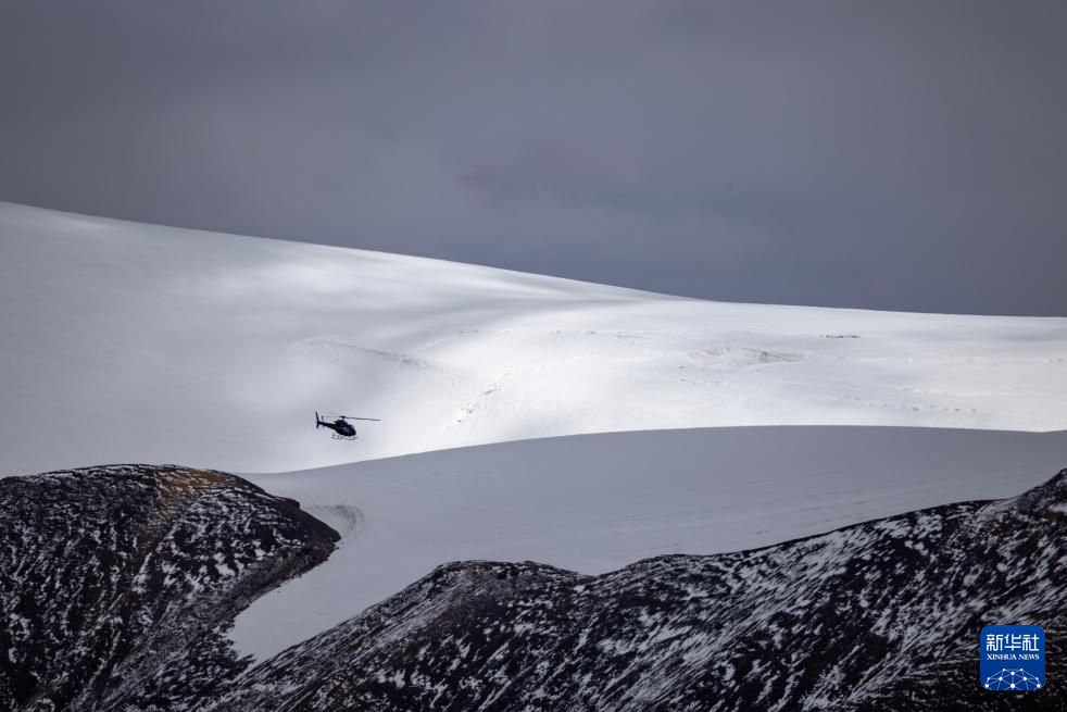 9月9日,直升机将科考物资从海拔5400米的第二次青藏科考普若岗日冰原大本营运往海拔6100米的“Dome.C”点。新华社记者 姜帆 摄
