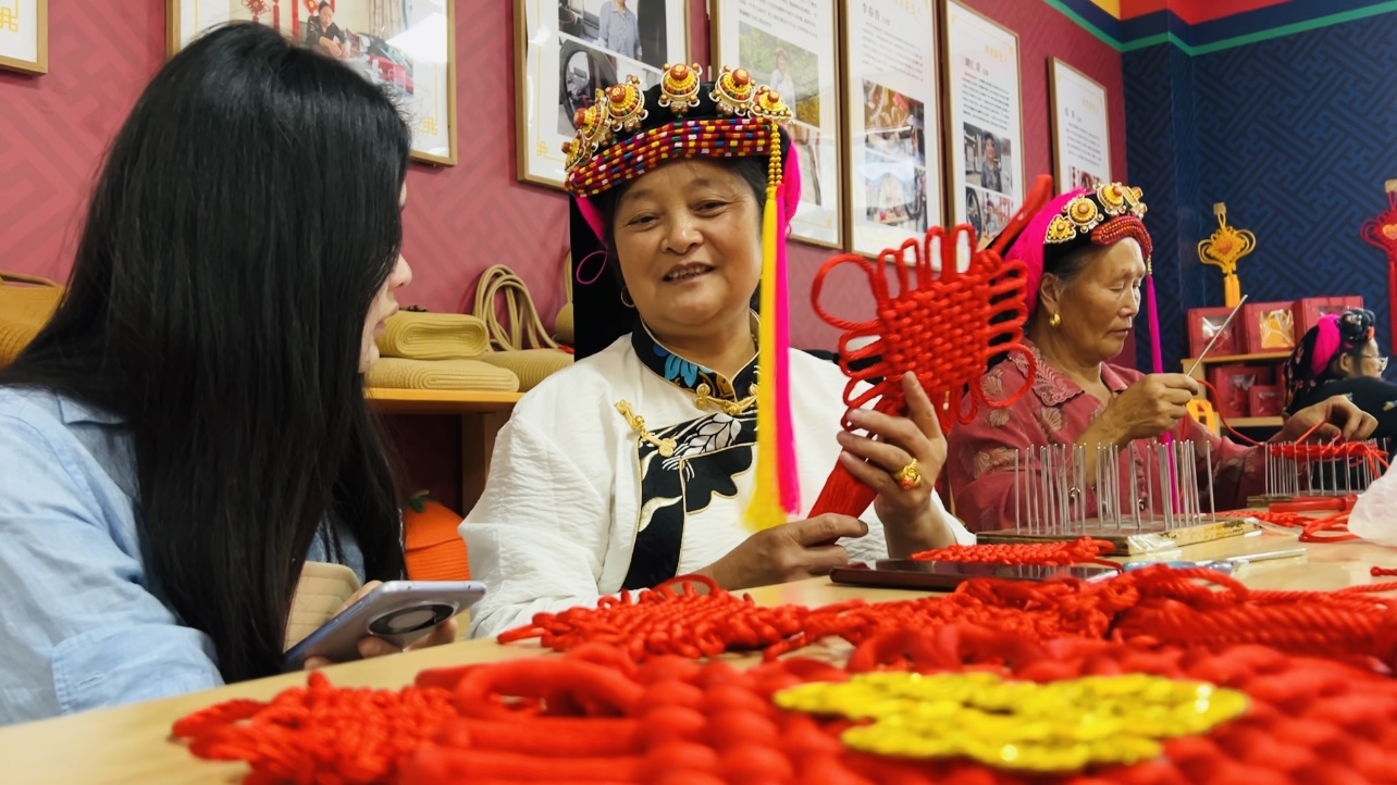 3000余人次接受培训、月均增收1000元、100名乡村网络主播、10个来料加工基地......这一串串数字,是金东区对口支援丹巴县的见证;一根根红绳,是绣娘们编织美好生活的生命线;一个个“中国结”,更是藏家儿女各民族团结一心、共同进步的“同心结”。