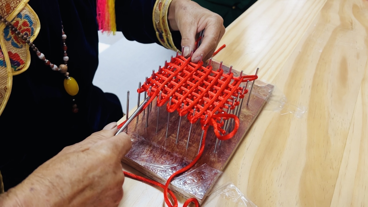 一根红绳、一枚钩针、一个木板、一部手机......四川观察记者随“铸牢共同体中华一家亲”主题宣传“雪域高原焕新貌”调研采访团在甘孜州丹巴县“金东—丹巴巾帼共兴工坊”看到,10余名身着民族服饰的绣娘正在案台前忙碌着,一根根红绳在她们的指尖缠绕翻飞,短短5分钟内就“摇身一变”成为一个个寓意幸福吉祥的“中国结”“同心结”。
