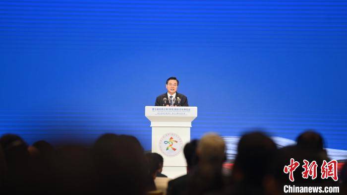 9月21日,第七届丝绸之路(敦煌)国际文化博览会开幕式在甘肃敦煌举行。图为中共甘肃省委书记胡昌升现场致辞。中新社记者 李亚龙 摄