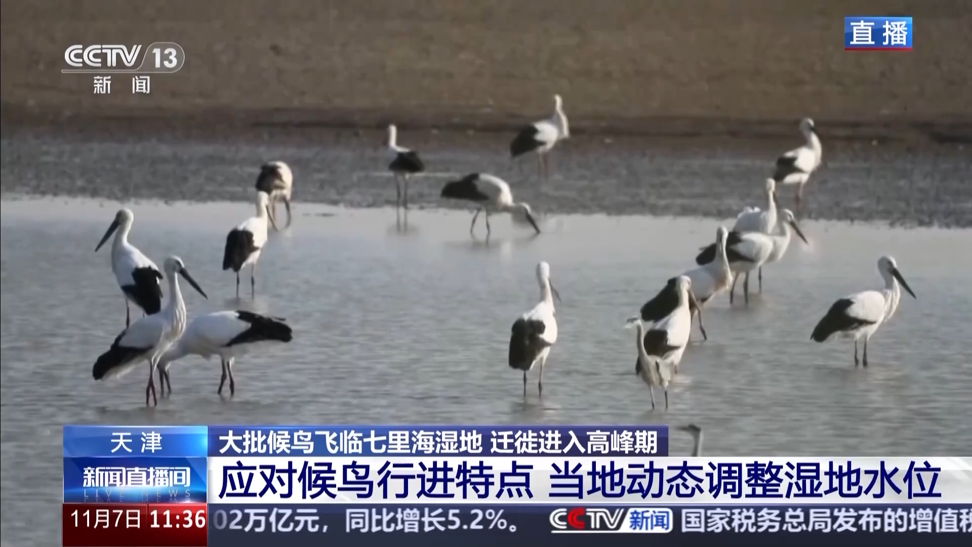 这里是天津市宁河区的七里海湿地内。通过画面可以看到,有不止一群鸟类正在远处的水面停歇。根据工作人员辨认,至少有白琵鹭、小天鹅、反嘴鹬等多种候鸟。每当迁徙季开始,我们对于候鸟的关注就一直在持续。从前几天拍摄到的画面可以看到:平静的水面上,候鸟们休息时挨挨挤挤聚成一团;而在觅食时,它们则三三两两地四散开来,有的悠闲漫步,有的将脑袋扎进水中寻找食物。