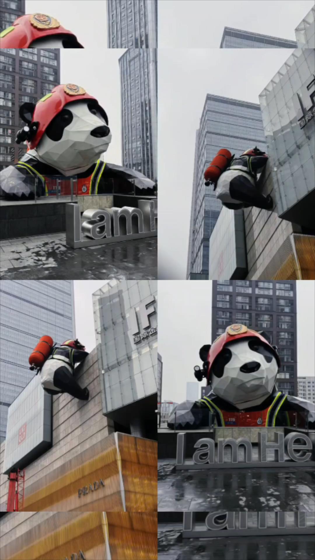 不、不、不,今年,网红爬墙熊猫为消防代言。