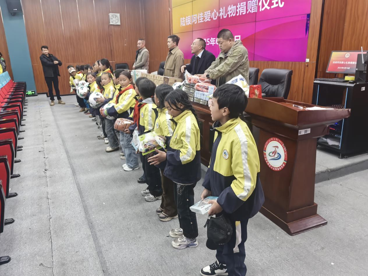 企业家陆银表示:“孩子们是祖国的未来,民族的希望。我们希望通过捐赠这些文体用品,为学校的教育教学工作贡献一份力量,让孩子们在德智体美劳全面发展的道路上走得更稳、更远。”朴实的话语中,饱含着对同学们的殷切期望和深情厚爱”。