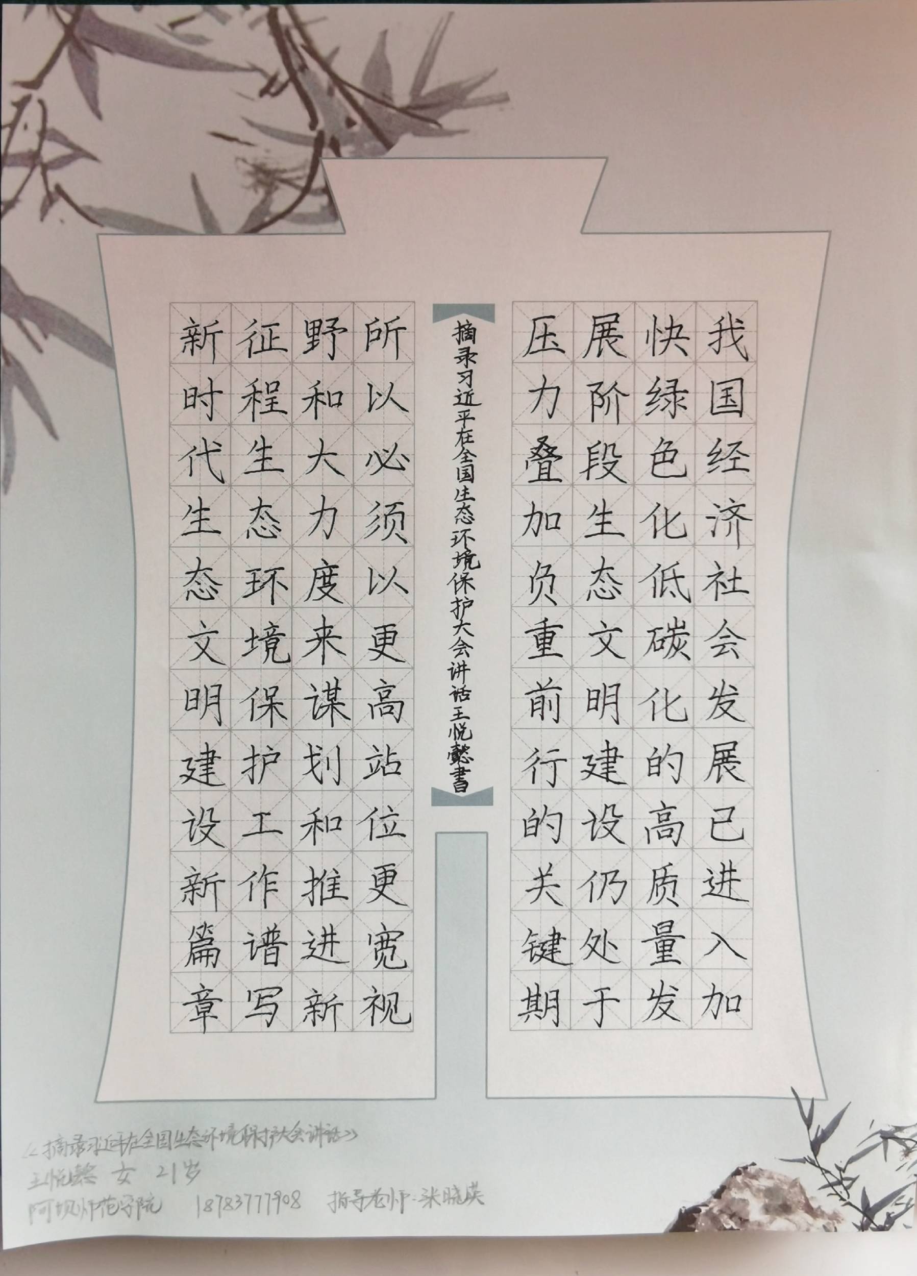 书法《奋斗新时代 启航新征程》阿坝师范学院 投稿人:何雨昕