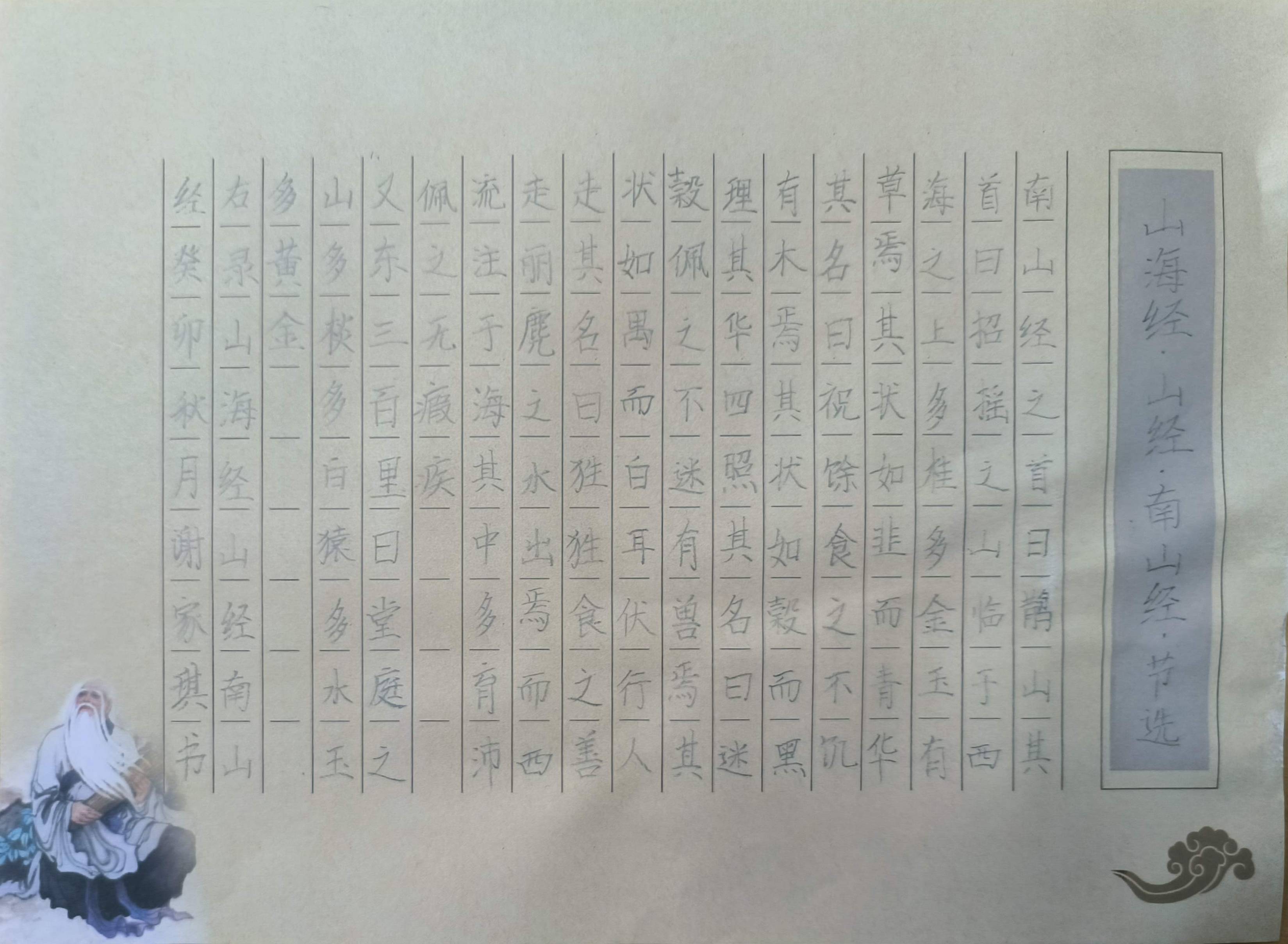 书法《山海经节选》投稿人:谢家琪 年龄:10岁